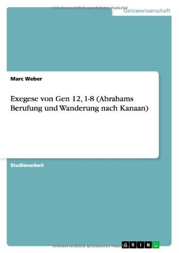 Exegese von Gen 12, 1-8 (Abrahams Berufung und Wanderung nach Kanaan) by Marc Weber (2007-08-14) PDF Online